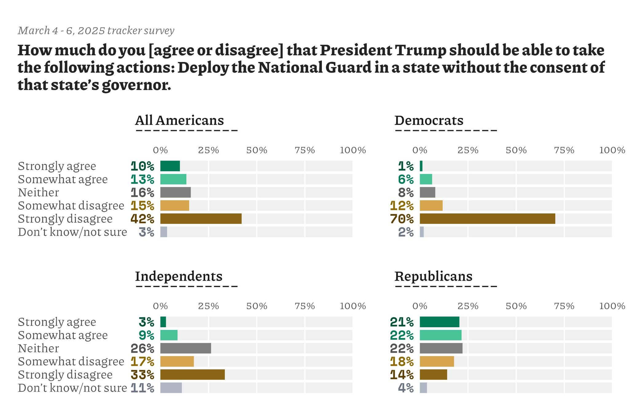 Less than a quarter of Americans think that Trump should be able to deploy the National Guard in a state without the consent of that state’s governor.