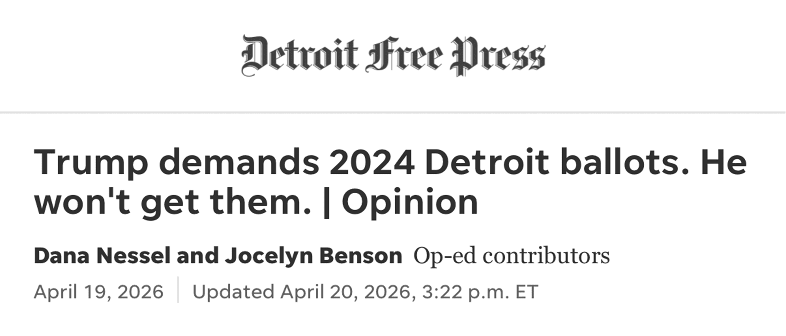 In an op-ed for the Detroit Free Press, Michigan Attorney General Dana Nessel and Secretary of State Jocelyn Benson explain why they’re pushing back on the Trump administration’s demand for Wayne County’s 2024 election records.