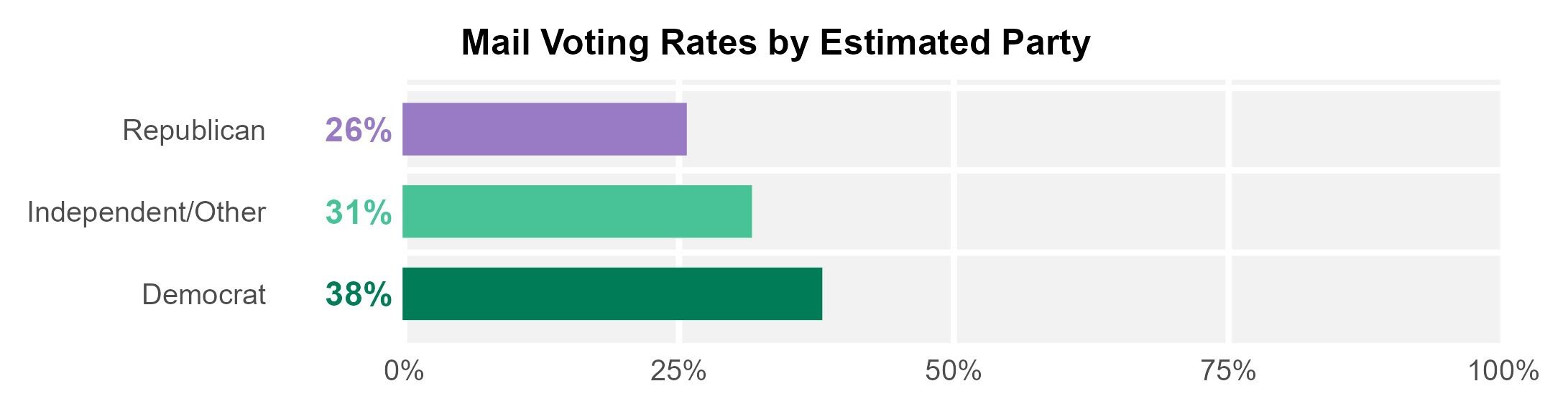 Mail voting rates by estimated, or modeled, party are useful for two reasons: