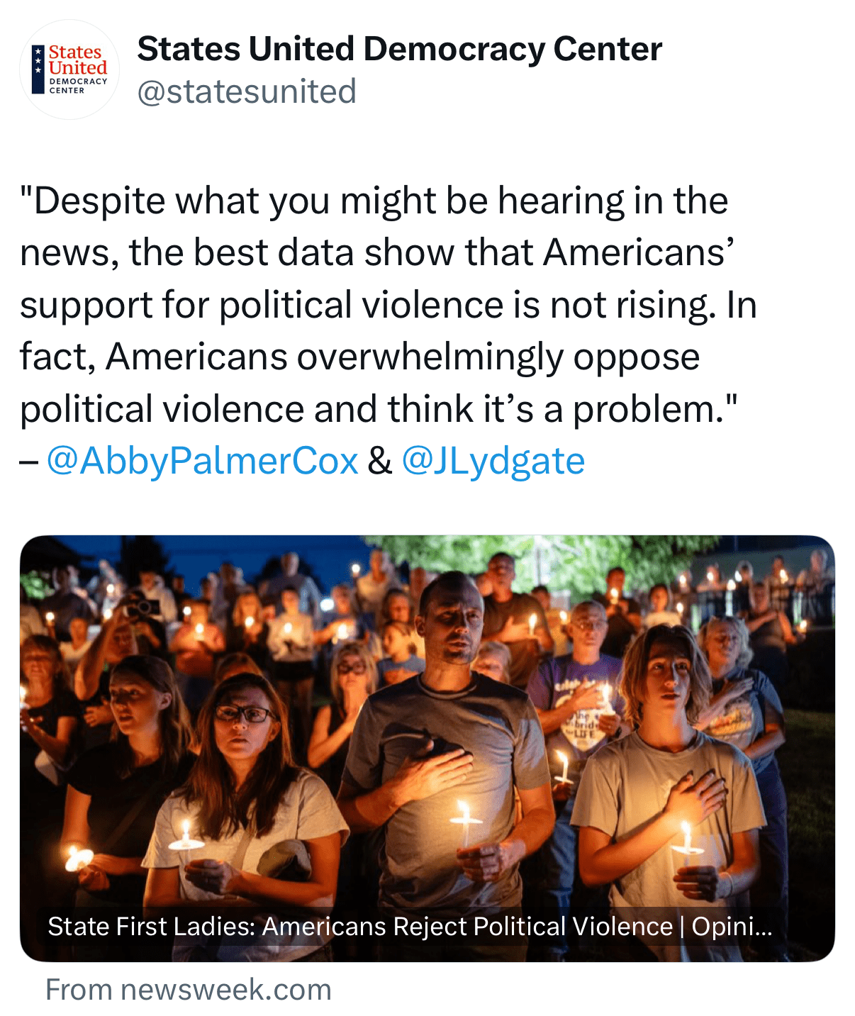 This all comes at a time when public safety and political violence are top of mind for Americans. Our research in 2025 found that Americans trust local law enforcement more than the National Guard to address crime in their communities, that Americans want law enforcement training and practices to remain nonpartisan, and that Americans are concerned about political violence. In October, States United CEO Joanna Lydgate co-authored a Newsweek op-ed with Utah First Lady Abby Cox about moving forward as a nation in the wake of devastating political violence. It has never been more important for our state and local law enforcement agencies to be learning from one another and absorbing best practice for how to protect and serve their communities.